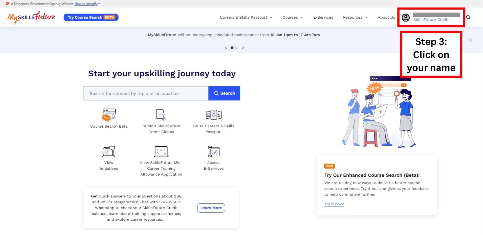 For Singpass holders, log on to www.myskillsfuture.gov.sg with your SingPass
